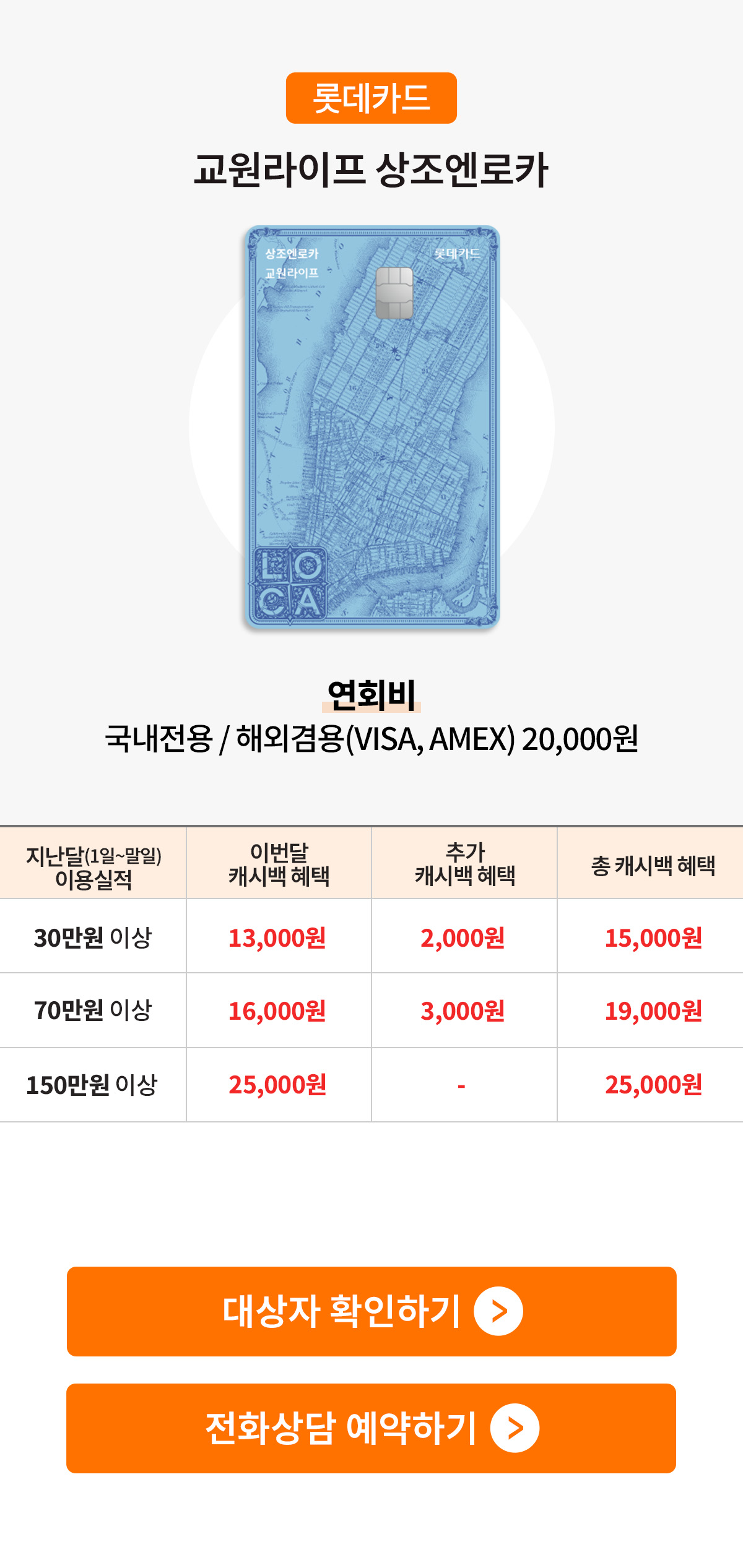 3. 롯데 개인 신용카드 6개월 무실적 회원으로 교원라이프 상조엔로카 카드로 이용금액 충족 한 회원
