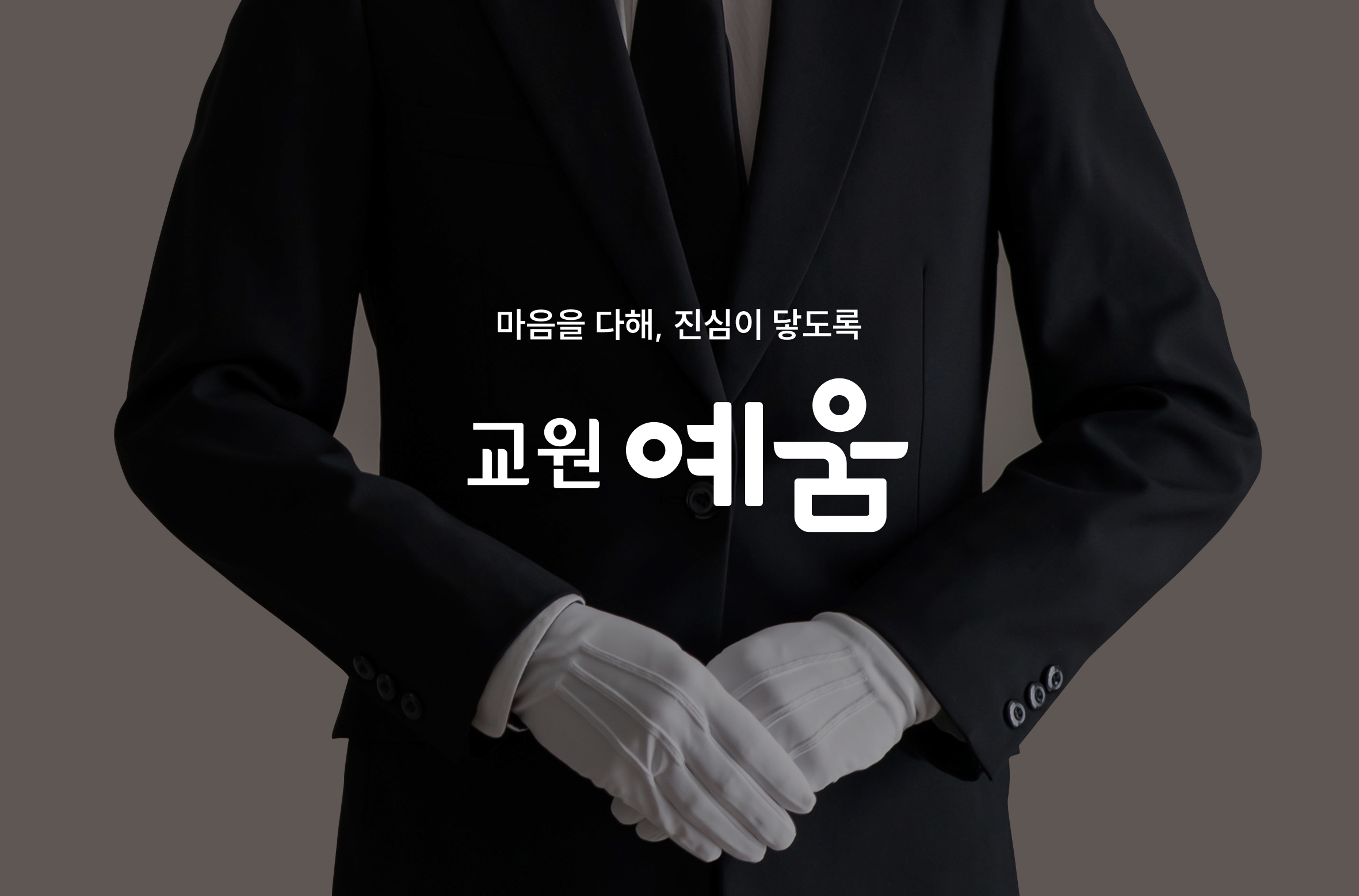 브랜드 이름에 걸맞게 최고의 예우로 모시기 위해 노력하고 있습니다. 고인의 고귀했던 삶을 아름답게 마무리하기 위해서 예와 공격을 담아 극진히 모시겠습니다. 조문객을 맞이하는 상주분들이 만족할 수 있도록 정성스러운 음식을 제공하기 위해 식음 품질 관리 고도화뿐만 아니라 교원예움에서만 제공하는 지역특산물을 이용한 F&B 메뉴 개발을 추진해 나가고 있습니다.